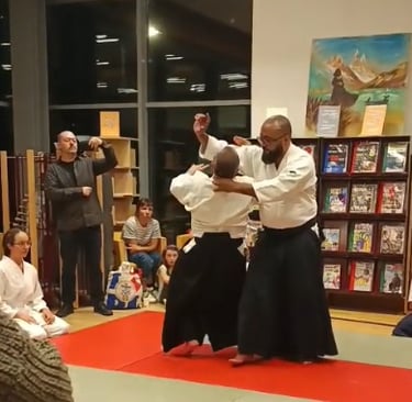 Le samedi 4 octobre, la Nuit des Bibliothèques à Villenave d’Ornon a transporté le public au cœur de la culture japonaise. Le club d’aïkido de Villenave était présent pour réaliser une belle démonstration d’aïkido, mettant en valeur la fluidité et la maîtrise de cet art martial. Les visiteurs ont également pu s’essayer à la calligraphie japonaise avec une des pratiquantes du club.